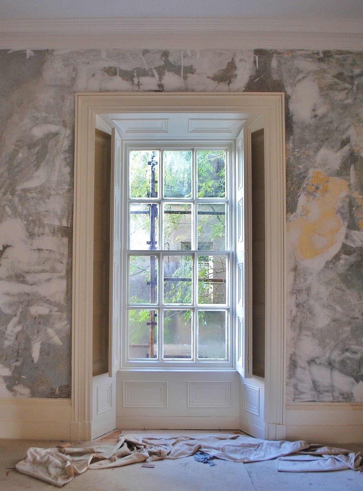 these reinstated rooms, details such as the cornicing, window shutters and high