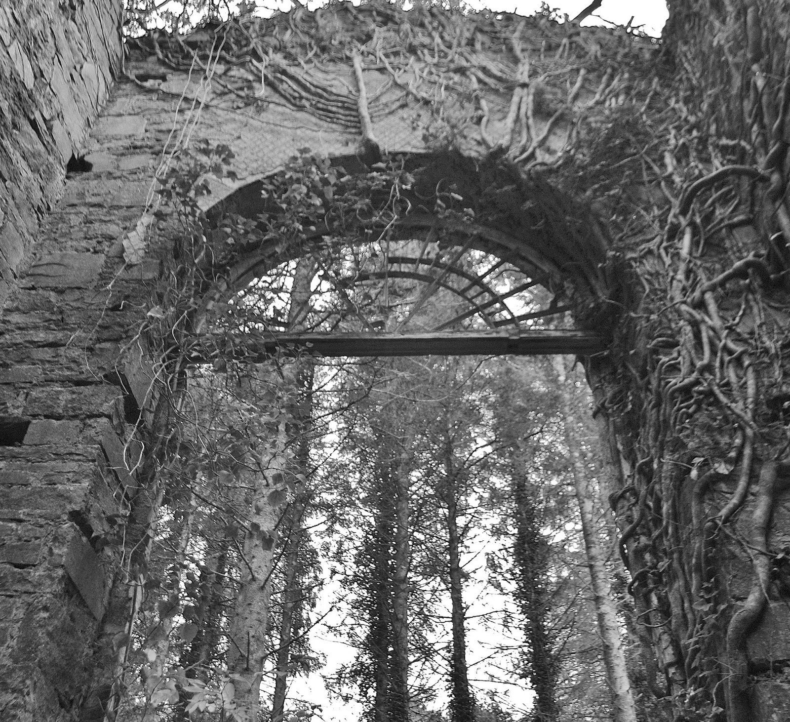 surround by tress and covered with ivy. Here and there, little glimpses of