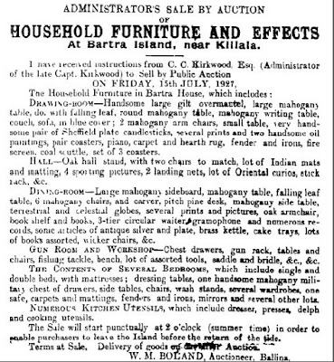 In July 1927, the household furniture and effects of the late Captain Kirkwood